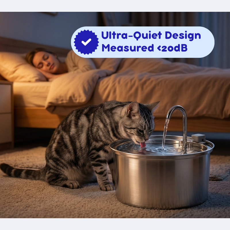No plastic touching your cat's water. Rust-proof, BPA-free, and dishwasher safe for easy cleaning.